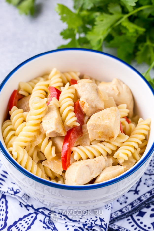 Макароны с куриной грудкой в сливочном соусе готовы.