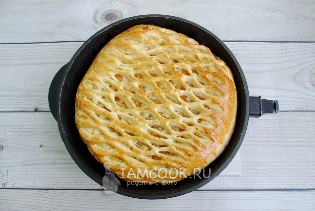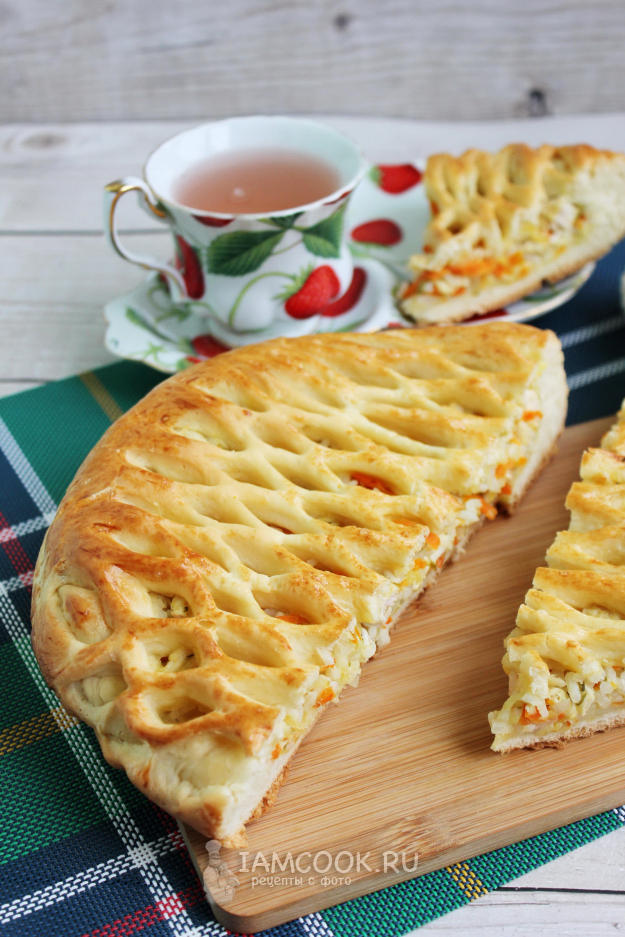 Вторую часть теста также раскатайте и сделайте узоры с помощью специального валика. Если его у вас нет, то просто накройте начинку пластом теста. На вкусе это не отразится.