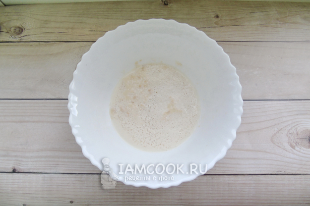 Начните с приготовления теста. В миску налейте теплое молоко и воду. Добавьте дрожжи и сахар, перемешайте. Дайте постоять этой смеси 10-15 минут, пока дрожжи не активируются.