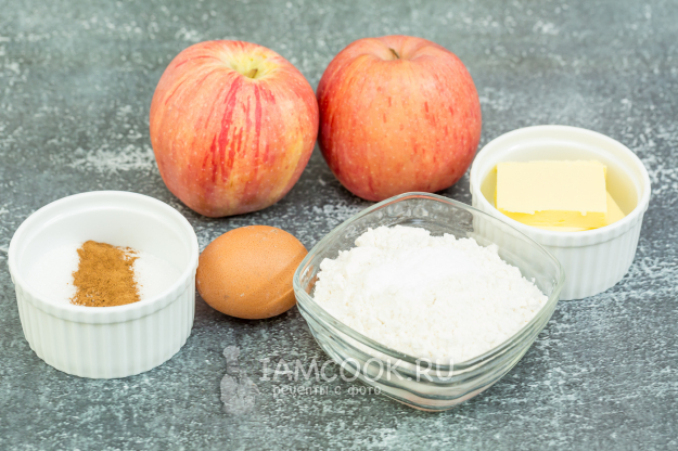 Для приготовления печенья «Шарлотка» с яблоками подготовьте продукты по списку.