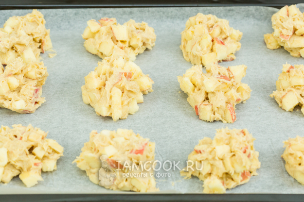 Выпекайте печенье «Шарлотка» с яблоками в разогретой до 180 градусов духовке 15-20 минут.