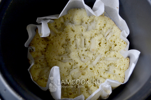 В чашу мультиварки положите пекарскую бумагу, которую смажьте растительным или сливочным маслом и влейте приготовленное тесто.