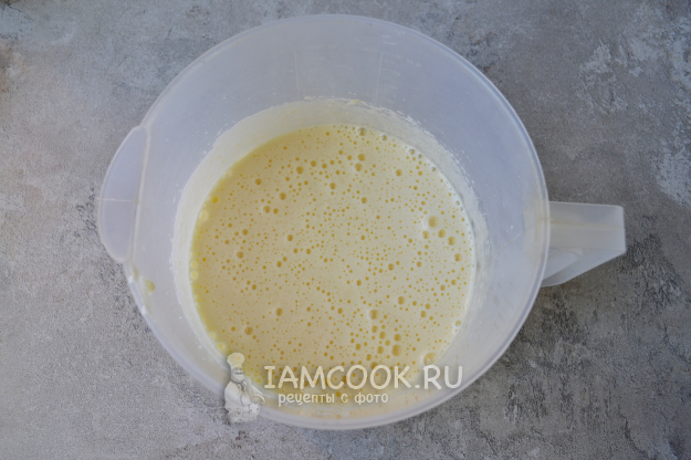 Миксером взбейте яйца с сахаром до пены.