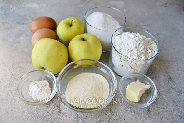 Продукты для приготовления шарлотки с яблоками и манкой в мультиварке - перед вами.