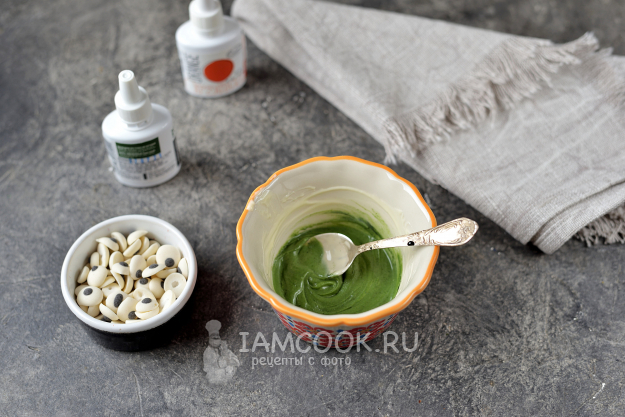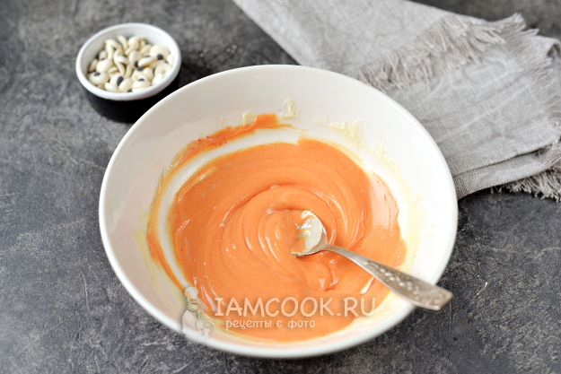 На водяной бане растопите оставшийся шоколад, добавьте несколько капель оранжевого красителя, цвет регулируйте по своему желанию, главное, не перестараться с оттенком.