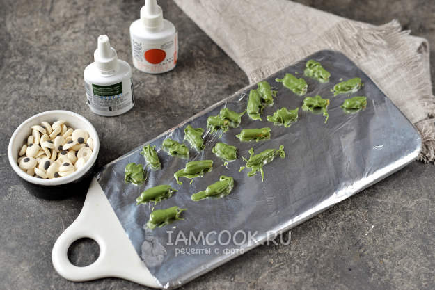 Выложите на разделочную доску с фольгой, отправьте в холодильник до полного застывания шоколада.