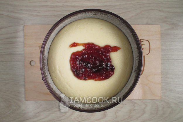 Вывалите в форму половину теста для манника и разровняйте.