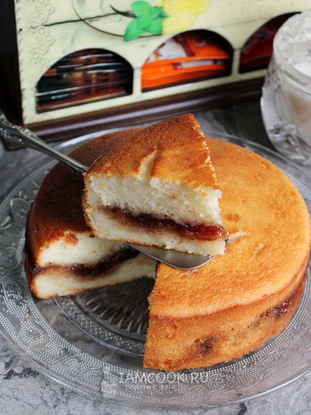 Верх теста немного подпечется и схватится. Теперь нужно добавить ровный слой джема (или другой густой начинки). Отступите от края, чтобы верхняя часть теста соединилась с нижней.