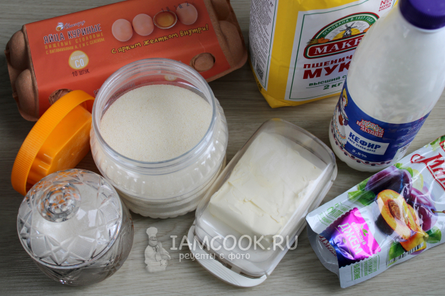 Для манника с начинкой из варенья подготовьте ингредиенты по списку к рецепту.