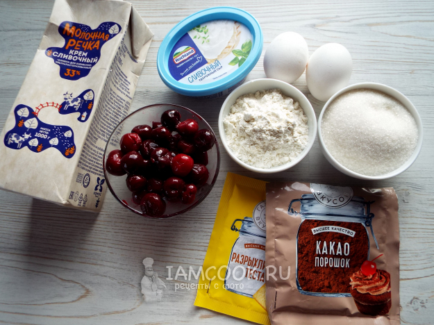Шоколадный трайфл с вишней будем готовить из таких ингредиентов.