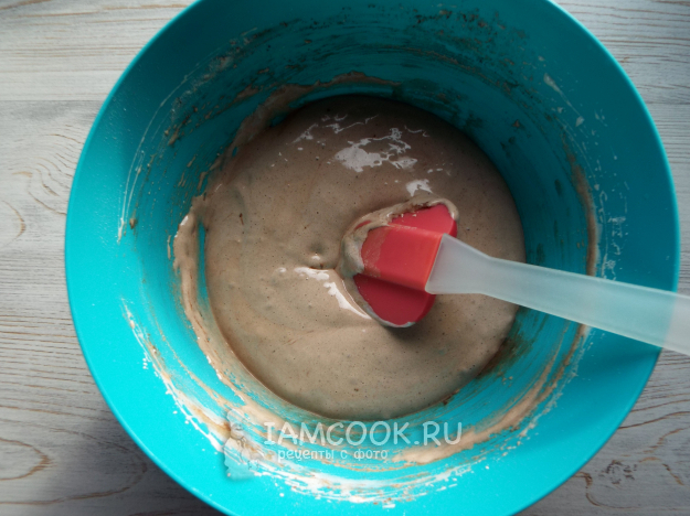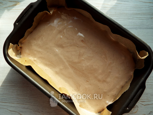 Переложить тесто в небольшую форму с бумагой для выпечки.