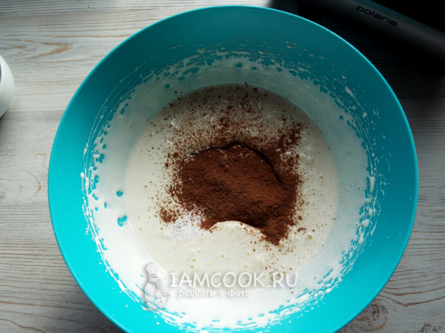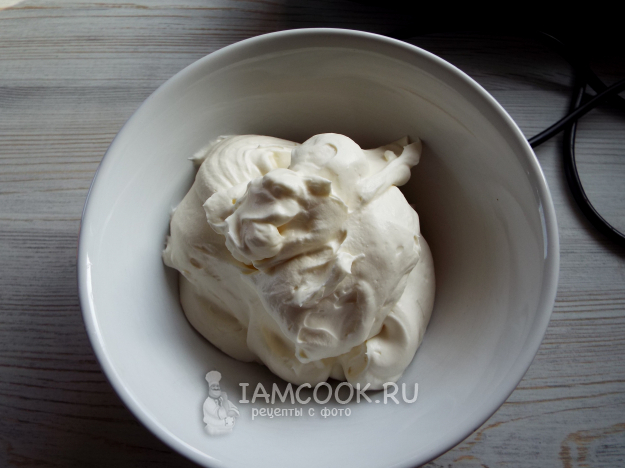 Холодные сливки и сыр с сахаром взбить миксером до устойчивого крема.