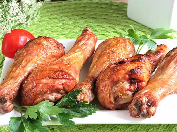 Промойте куриные ножки, вытрите насухо бумажными полотенцами. Мясо натрите солью и черным молотым перцем, добавьте сладкую паприку и куркуму.