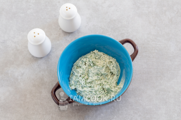 Зелень укропа ополосните, обсушите и мелко нарежьте. В миске соедините сливочный сыр, зелень, небольшую щепотку соли и молотого черного перца, и 1-2 ч.л. лимонного сока.