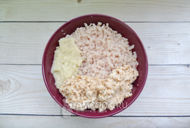 Продукты для приготовления тефтелей из судака представлены на фотографии.