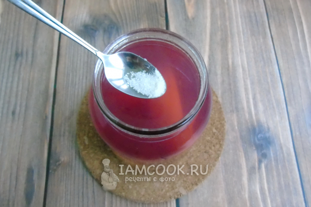 Горячий фруктовый отвар с фруктами налейте в стерилизованную банку. Добавьте лимонную кислоту.