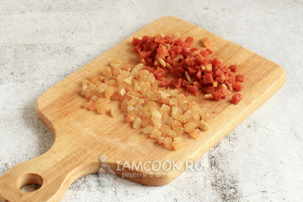 Я позволила себе добавить немного цукатов, чтобы придать начинке апельсиновый привкус, но можно заменить их лимонной или апельсиновой цедрой.