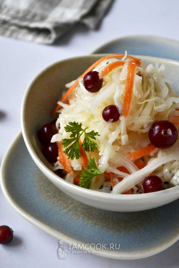 Маринованная капуста с луком быстрого приготовления включает в себя следующие ингредиенты.