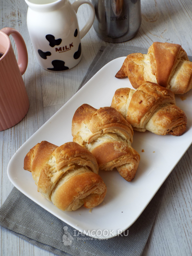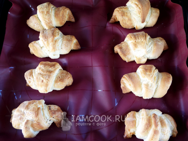 Закрутить. Переложить круассаны на противень, прикрыть полотенцем и оставить на 20 минут.