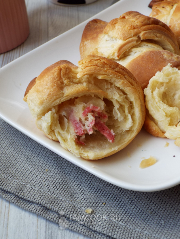 Возьмите необходимый продуктовый набор для приготовления круассанов с сыром и колбасой.