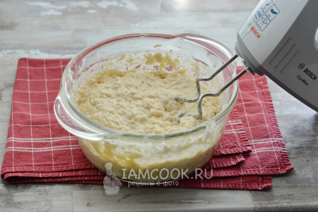 При помощи специальных насадок на миксере начните замешивать тесто, чтобы все ингредиенты соединились. Вместо миксера можно помочь себе вилкой, соединяя все ингредиенты, а потом уже месить руками.