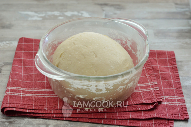 В процессе замеса вы поймёте, нужно ли добавить еще муки. Ведь она бывает разная и порой в дрожжевом тесте её количество может варьироваться. Тесто должно получиться мягким и эластичным. В первый замес можно не вымешивать тесто долго. Достаточно просто соединить ингредиенты. Оставьте миску с тестом, накрыв её плёнкой, при комнатной температуре на 1-2 часа, чтобы тесто поднялось.