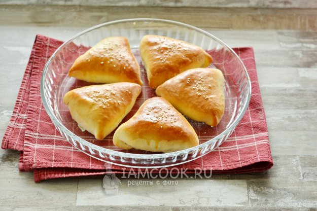 Защипайте края любым способом. Классическая форма капустных пирожков - треугольная.