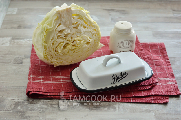 Продукты для капустной начинки - перед вами. Это, собственно, только капуста и сливочное масло.