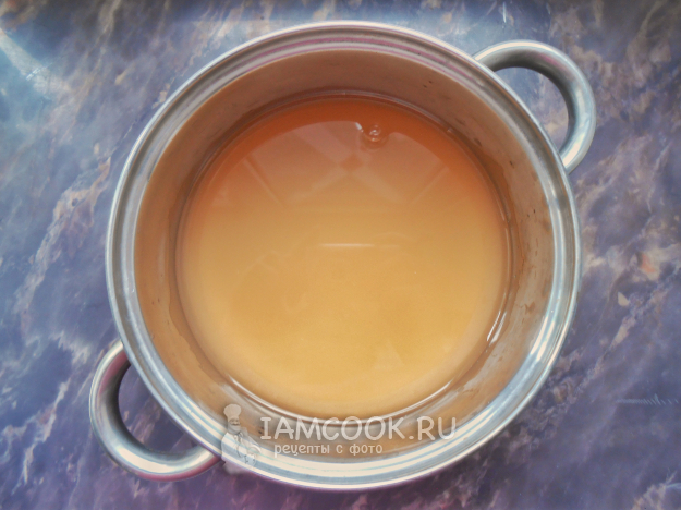 Перелейте сок в небольшую кастрюльку и поставьте на огонь. Доведите до кипения.