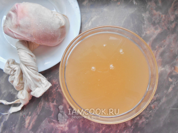 Отожмите руками фруктовый сок, скручивая мешочек жгутом. Останется лишь мякоть в мешочке, она не понадобится.