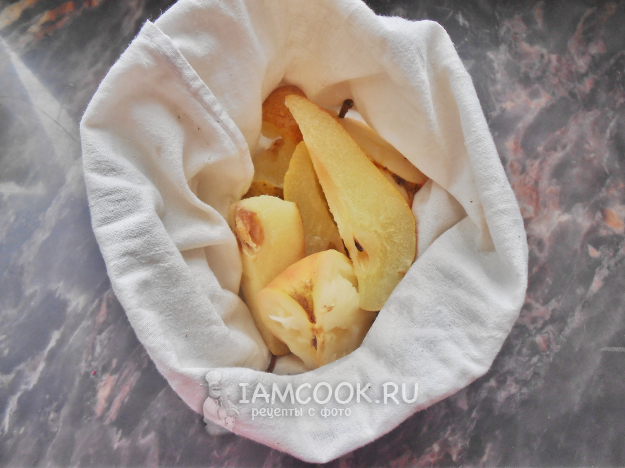 Теплые и мягкие фрукты переложите в плотный хлопчатобумажный мешочек.