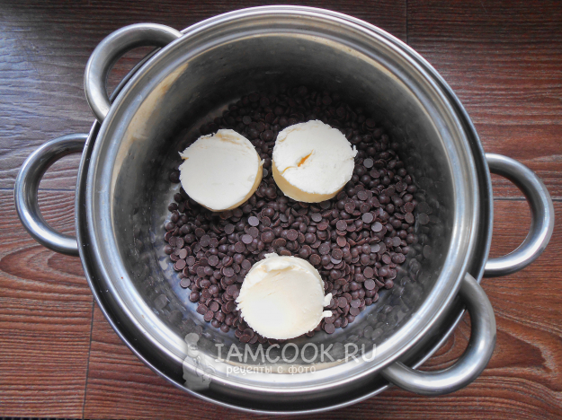 Растопите шоколад со сливочным маслом на водяной бане, периодически помешивая, до однородности.