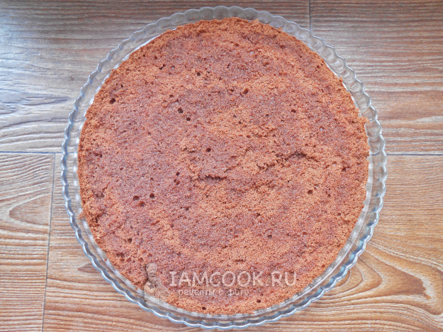 Выпекайте шоколадный бисквит в разогретой до 180 градусов духовке полчаса. Горячий бисквит освободите от формы и бумаги. Оставьте его полежать 12 часов при комнатной температуре, прикрыв полотенцем.