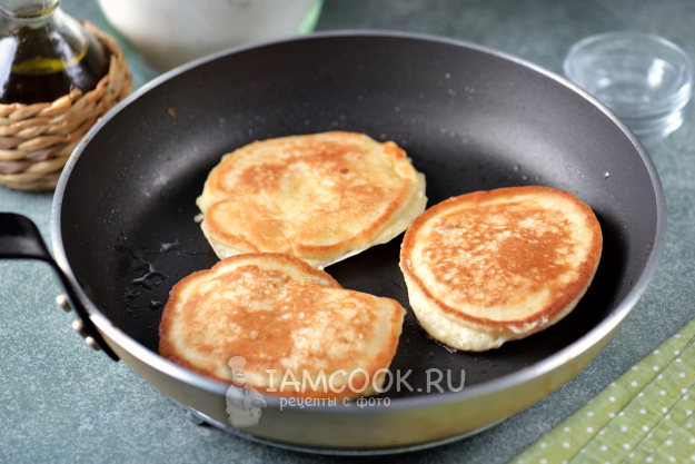 Разогрейте в сковороде немного растительного масла, выкладывайте в него по полной столовой ложке теста и выпекайте оладушки на тихом огне минуты по 2 с каждой стороны. На сильном огне оладьи начнут гореть из-за наличия банана в тесте.
