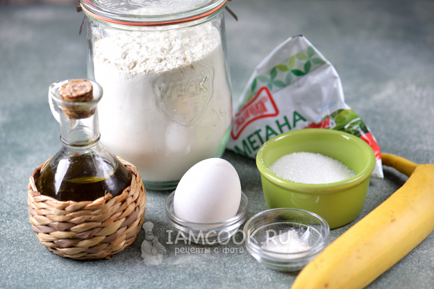 Ингредиенты для приготовления банановых оладий на сметане - перед вами.