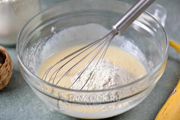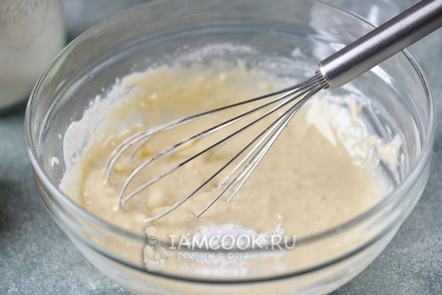 Дальше всыпьте муку, замесите тесто. Тесто получится достаточно густым.