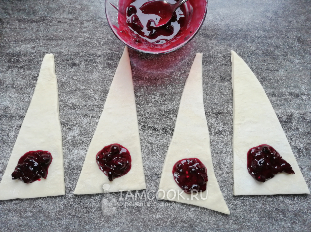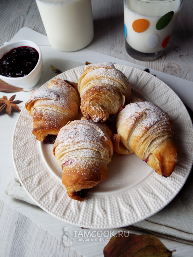 Чтобы сделать круассаны с вареньем из готового слоеного теста, потребуется всего 3 ингредиента.
