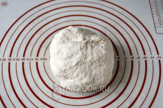 Замесите тесто руками. Шар теста накройте миской и оставьте на столе, пока будете варить пшенную кашу. За это время тесто "отдохнет" и его будет легко раскатывать.