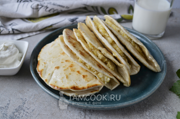 На стол кыстыбый на кефире с пшенной кашей подавайте горячими с чаем, сметаной, молоком.