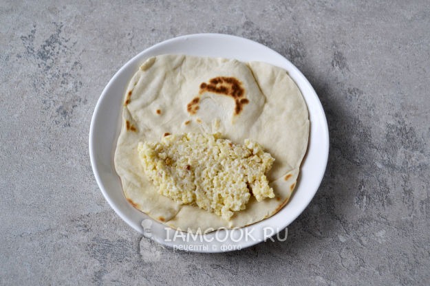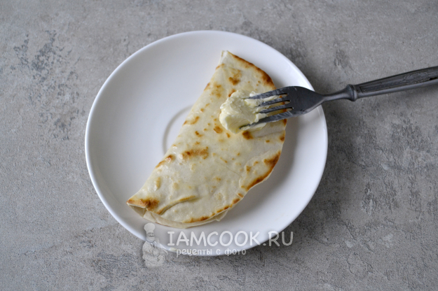 Сложите лепешку пополам и щедро смажьте сливочным маслом с обеих сторон.