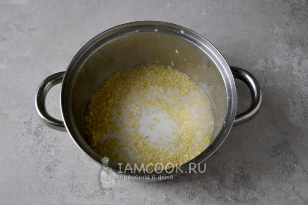 Варите на тихом огне, пока пшено не станет мягким. Для начинки кыстыбый нужна густая или вязкая пшенная каша. Готовую кашу немного охладите.