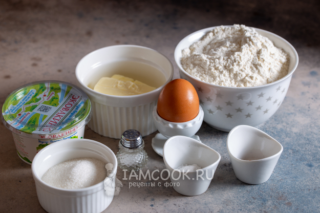 Продукты для приготовления рассыпчатого нежного песочного печенья на сметане - перед вами (подробнее - в списке ингредиентов).