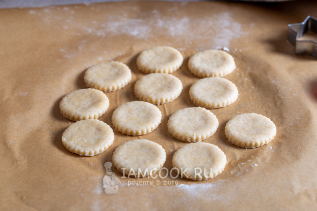 Формочками вырежьте печенье и уберите лишнее тесто.