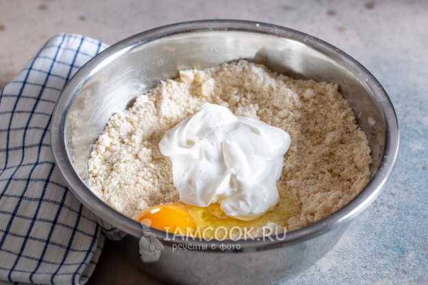 Добавьте разбитое яйцо, сметану и перемешайте.