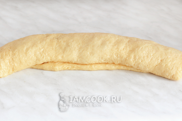 Сверните тесто в тугой рулет, а затем сформируйте шарик, подмесите на столе и снова дайте тесту подняться.