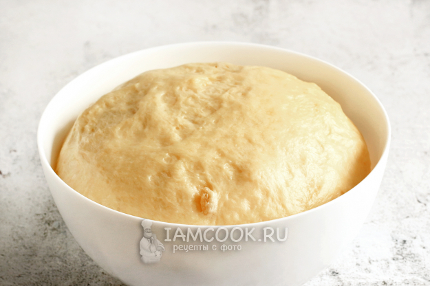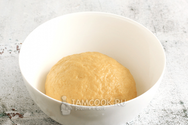 Тесто получается послушным и почти не липнет к рукам. Смажьте его и миску растительным маслом, накройте пленкой или полотенцем и оставьте подойти в теплом месте.
