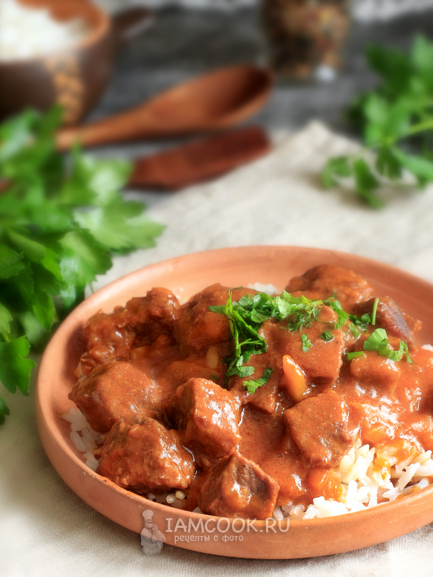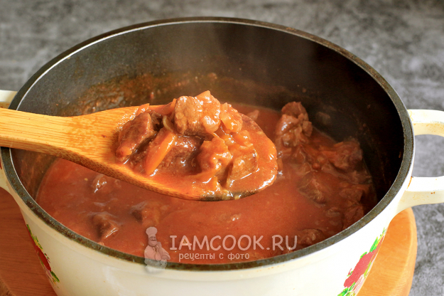 Классический гуляш из говядины с подливкой готов. Подавайте его с любым гарниром по вашему вкусу.