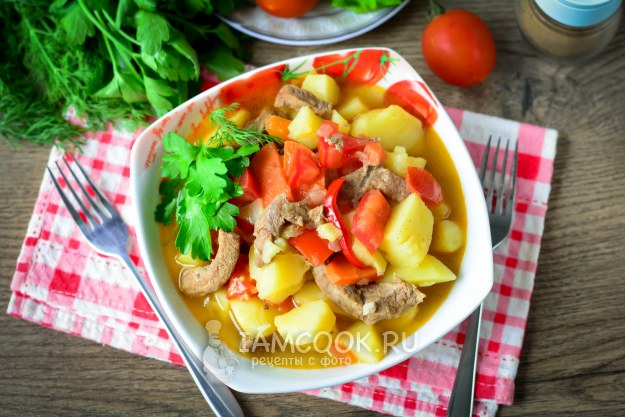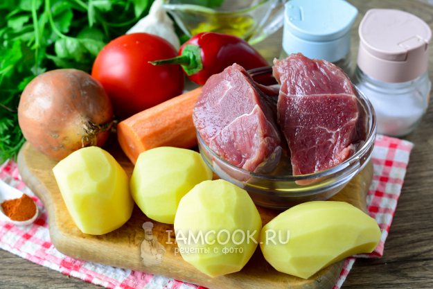 Ингредиенты для приготовления гуляша из говядины с картофелем - перед вами.
