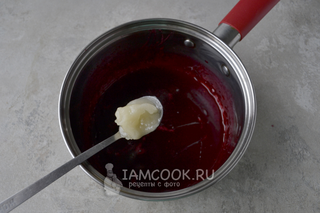 Снимите сотейник с огня, немного охладите и добавьте мед. Перемешайте, чтобы мед полностью растворился. Малиновая пропитка для бисквита готова.