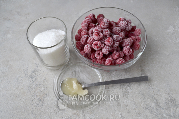 Продукты для приготовления малиновой пропитки для бисквита - перед вами. Малину можно взять как свежую, так и замороженную.